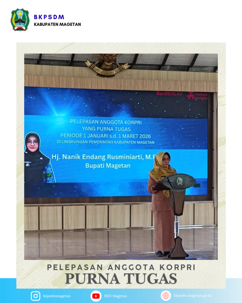 Kurang lebih sebanyak 75 ASN di lingkungan Pemerintah Kabupaten Magetan yang memasuki masa purna tugas pada periode 1 Januari s.d. 1 Maret 2026 secara simbolis dilepas oleh Ibu Bupati.